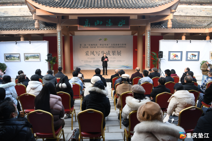 12月25日,第二届“巴蜀风韵 橙意邻水”文化旅游宣传周暨“山邻水依 川渝共融”明月山绿色发展示范带川渝美术家联盟邻水行采风写生成果展在邻水县美术馆开展。相关部门代表、入展作品作者代表、美术教师代表约70余人到场参观展出。