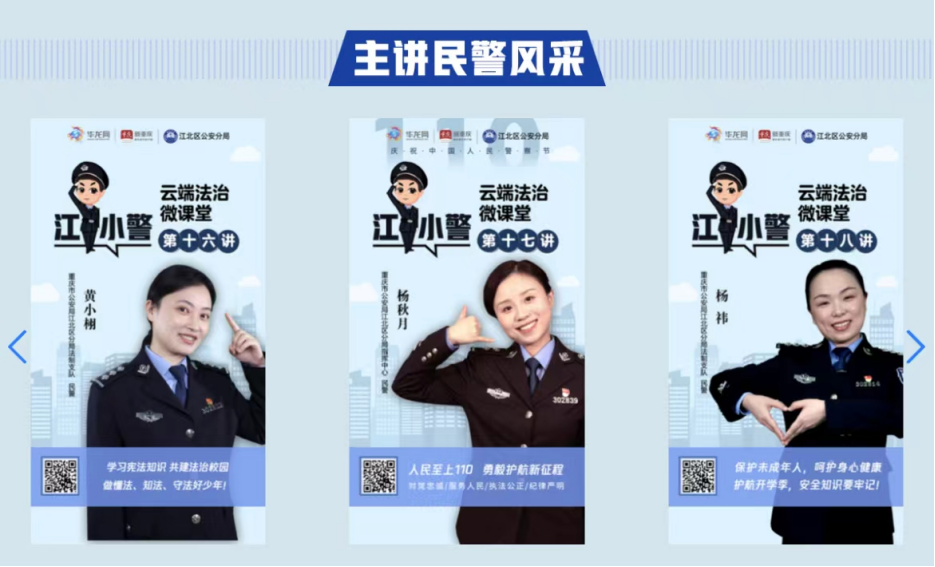 为深入贯彻落实习近平法治思想,进一步做好“八五”普法期间法治宣传教育工作,积极承担普法社会责任,华龙网政法频道同江北区公安分局联合推出“江小警云端法治微课堂”栏目。紧紧围绕“平安校园”建设开展安全宣传,累计推出微视频23期,同步投放到江北区各学校进行云课堂展播,覆盖50余所中小学校、近10万学生,视频点击总量超过100万人次,同时深入开展进社区、进校园线下活动20余次,向群众讲好法律知识,唱响时代主旋律。
