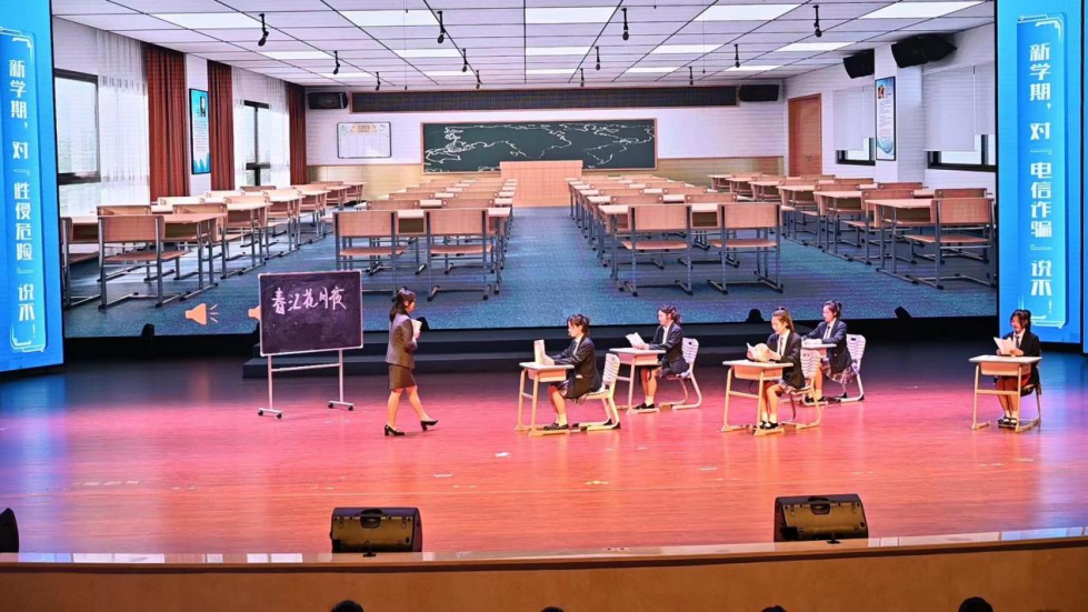 在江小警云端法治微课堂的线下进校园活动中,一场场由青少年学生参与制作、演出的情景剧展现了多个校园生活主题。如在《保护未成年人,呵护身心健康》一课中,学生小李、小张与假扮诈骗分子的女民警走上台,通过情景再现,还原刷单类诈骗的全过程。