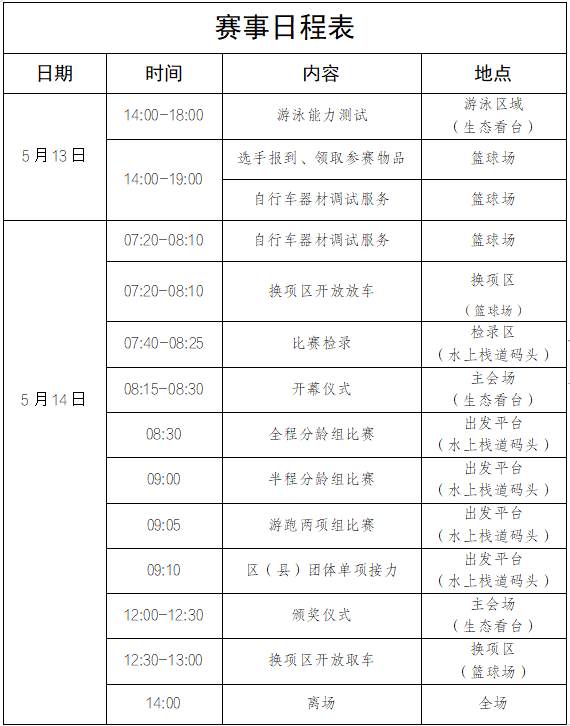 赛前3天通过“重庆垫江铁人三项公开赛”微信公众号发布比赛出发名单。
