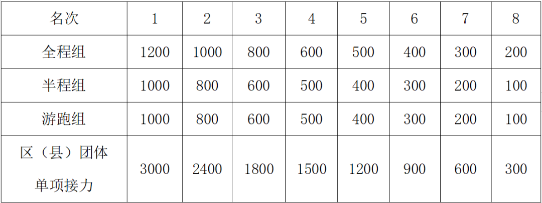 2.区(县)团体单项接力前3名获得团体奖杯,前8名获得团体奖金;