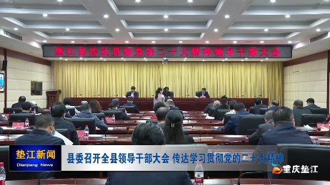 10月25日,县委召开全县领导干部大会,传达学习党的二十大精神,安排部署全县学习宣传贯彻工作。县委书记毛平主持并讲话。他强调,要更加紧密地团结在以习近平同志为核心的党中央周围,以党的二十大精神为指引,大力弘扬伟大建党精神,积极融入主城都市区、建好区群联结点、打造产业新高地,奋力建设生态美、经济强、百姓富现代化新垫江,为全面建设社会主义现代化国家、全面推进中华民族伟大复兴作出新的更大贡献。