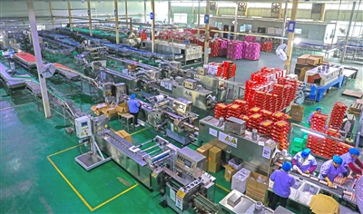 佳佳乳业生产车间工人有序作业