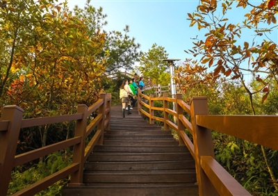 市民趁着暖阳漫步在天宝寨步道
