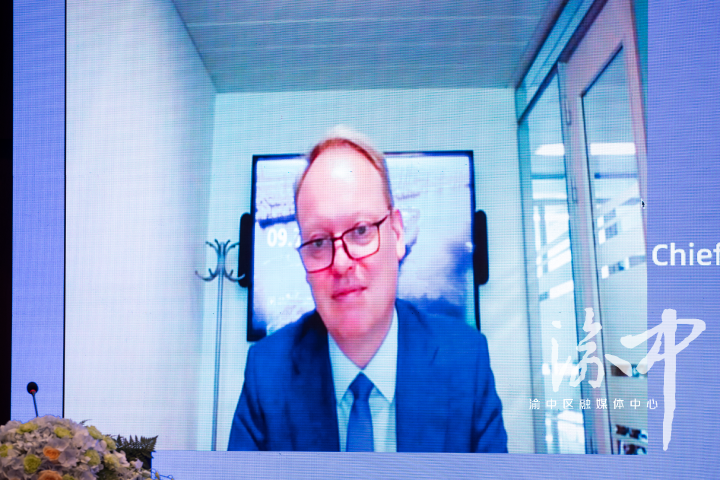 渝中区委书记赵世庆、市商务委一级巡视员宋刚出席并致辞,马士基集团中国首席代表彦辞发表线上致辞。渝中区委副书记、区长黄茂军主持。马士基(中国)政府关系和公司事务总经理喻静线上出席。马士基大中华区综合船运部门供应链管理总监崔佳,马士基全球服务共享中心(成都)总经理聂冼峰,凯德地产(中国)重庆董事总经理黄瑞程,渝中区委常委、副区长邓光怀参加。