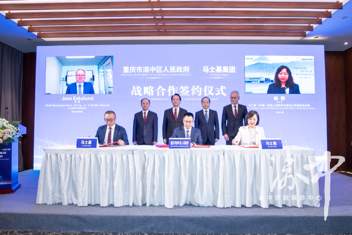 赵世庆指出,“母城”渝中,开放历史悠久、开放资源富集、开放平台众多,是重庆“零公里”的起点,也是长江上游地区金融机构最富集、总部经济最发达、商务商贸最活跃、综合配套最完善的经济高地。朝天扬帆、远征起航。当前,渝中正积极融入“一带一路”、成渝地区双城经济圈、中新互联互通项目、陆海新通道等重大战略,全面发挥带头开放、带动开放作用,全力建设“四化”现代都市、打造“四区”首善之地。马士基集团位列世界500强,实力雄厚、发展良好,是全球航运标杆企业,对行业发展具有重要的引领带动作用。重庆来福士作为中新合作示范项目,是渝中高端服务业的承载地,也是重庆的地标建筑和城市名片。希望政企各方充分发挥各自优势、共谋发展新篇,坚守共同约定、推动落地见效,立足互利共赢、携手共创辉煌,全力开启全方位、多层次、宽领域的战略合作,共同谱写友谊长存、合作长久、事业长虹的崭新篇章,在助力重庆内陆开放高地建设中实现新作为、展现新担当。渝中将一如既往做到言出必行,真诚对待每一个需求,全力兑现每一个承诺,努力打造国际一流营商环境示范区,全力支持马士基集团、凯德集团等众多优质企业投资创业、发展壮大。