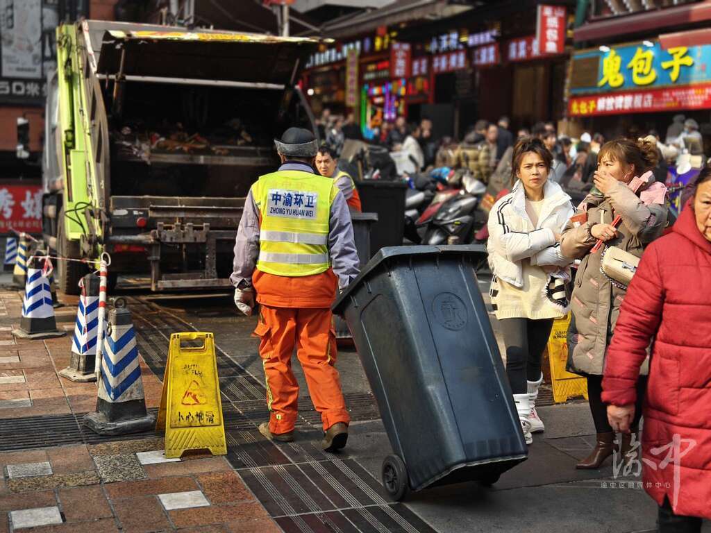 坚守岗位的环卫工人不止罗万勤一个。据了解,春节期间,垃圾产生量较平时增加一倍以上。渝中区城管局强化了保洁力度、频次,通过人机结合的方式保障重点道路、景区景点,热门商圈干净整洁,并将部分重点区域保洁时间延长到凌晨1点。同时,采取增设垃圾收运车、增派拉桶人员、避开高峰期错时收运等措施,灵活调整了八一路好吃街、沧白路洪崖洞等人流密集区域垃圾收运模式,做到了垃圾不满溢、不下地、即产即清。