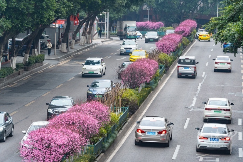 渝中融媒体中心-重庆渝中客户端(记者 晏艳辉 摄影 罗云希)初春时节,气温回暖,大街小巷的美人梅进入花期,靓丽的花色点缀街头,成了渝中一道道引入注目的城市风景线。