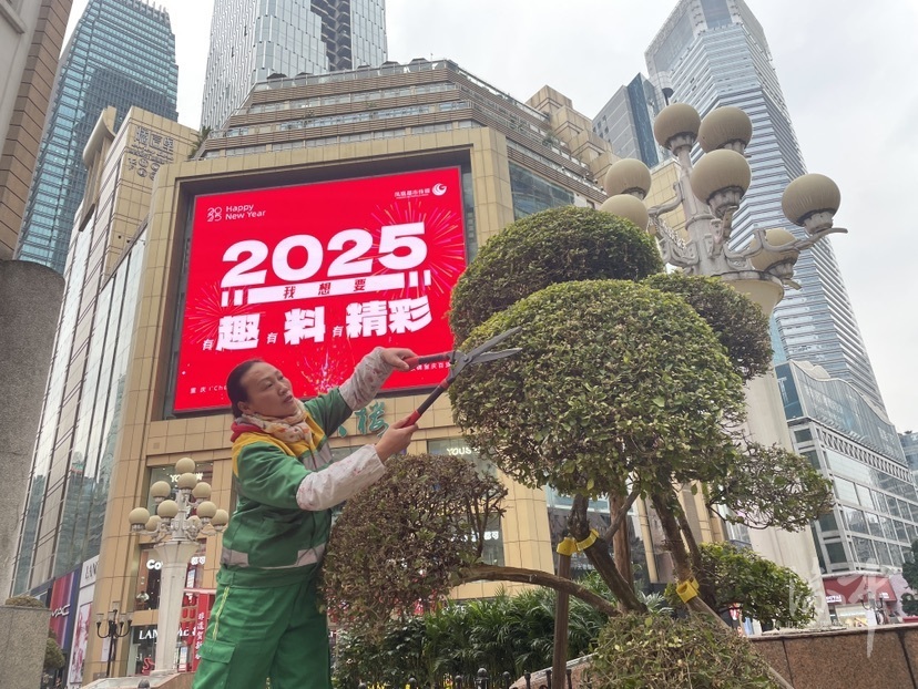 渝中融媒体中心-重庆渝中客户端(记者 晏艳辉)春季是植物生长的黄金期,为提升解放碑地区的园林绿化景观效果,连日来,渝中区城管局抢抓春季“黄金期”,按下绿化“快进键”,对解放碑地区的植物进行精细化养护,营造生机盎然的绿化环境,扮靓窗口地区的颜值气质。