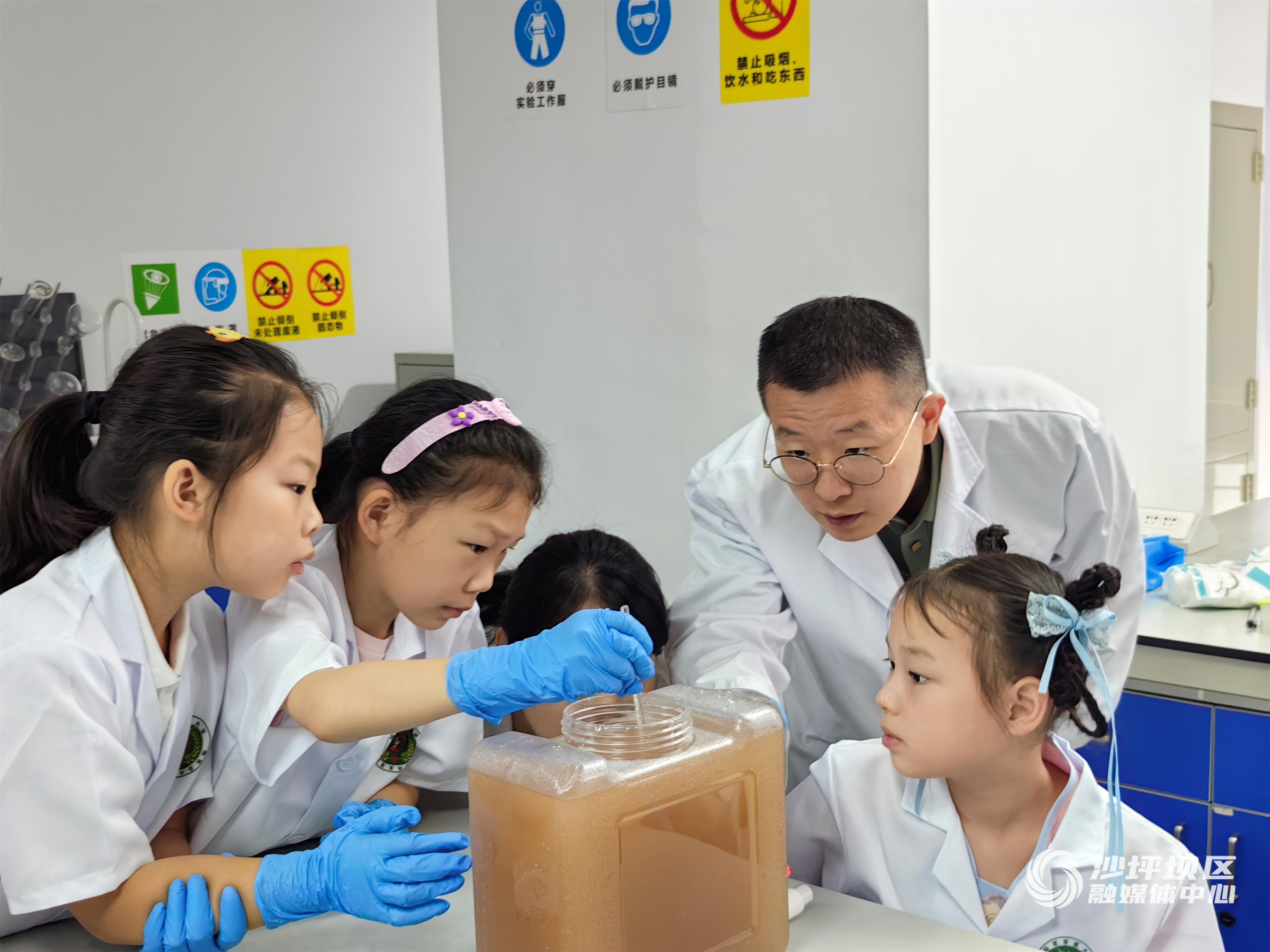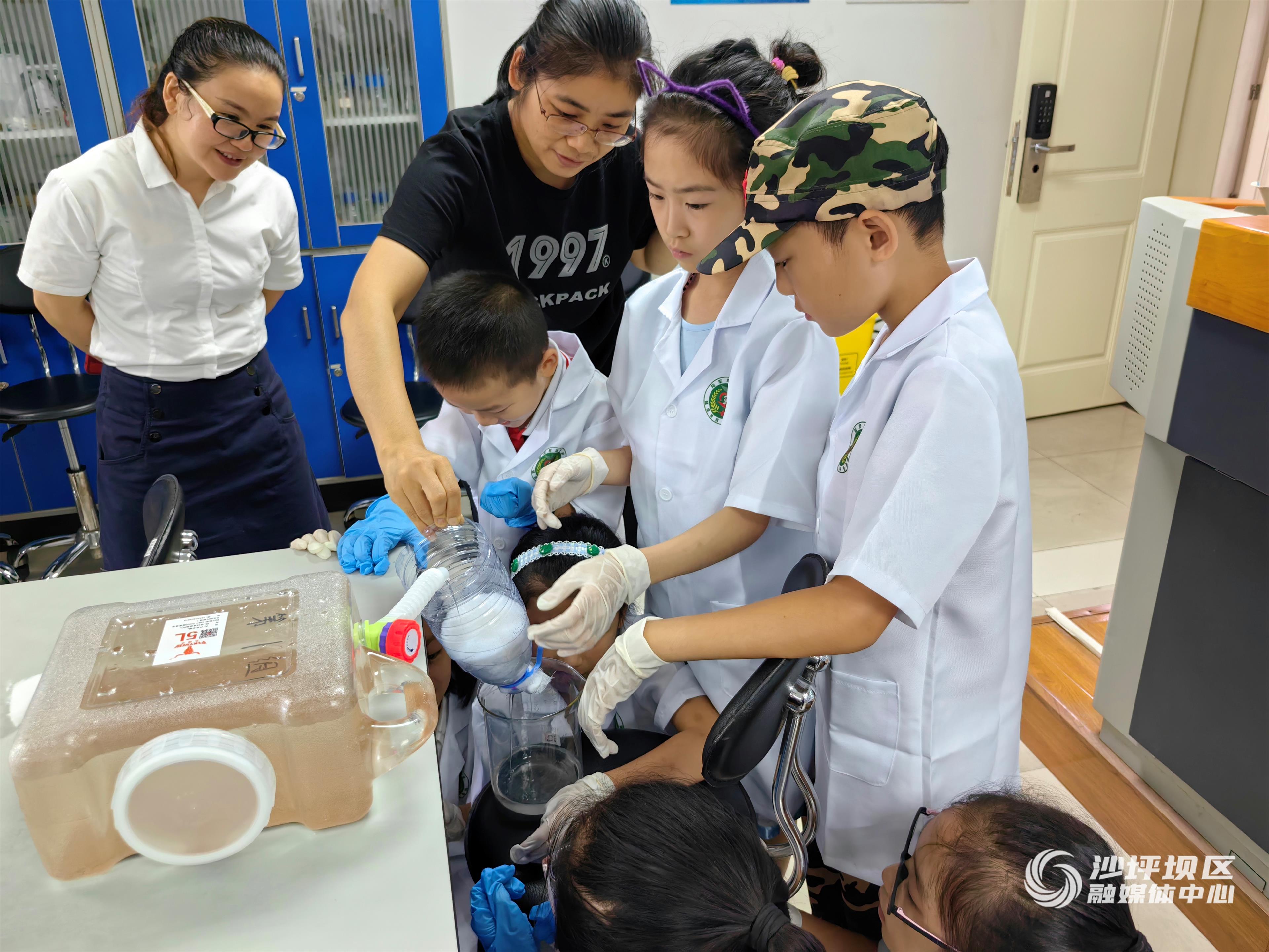 7月16日,新桥街道高滩岩社区联合沙区科协、陆军军医大学健康教育科普基地开展了大手牵小手科普研学活动——健康饮水科学实验。