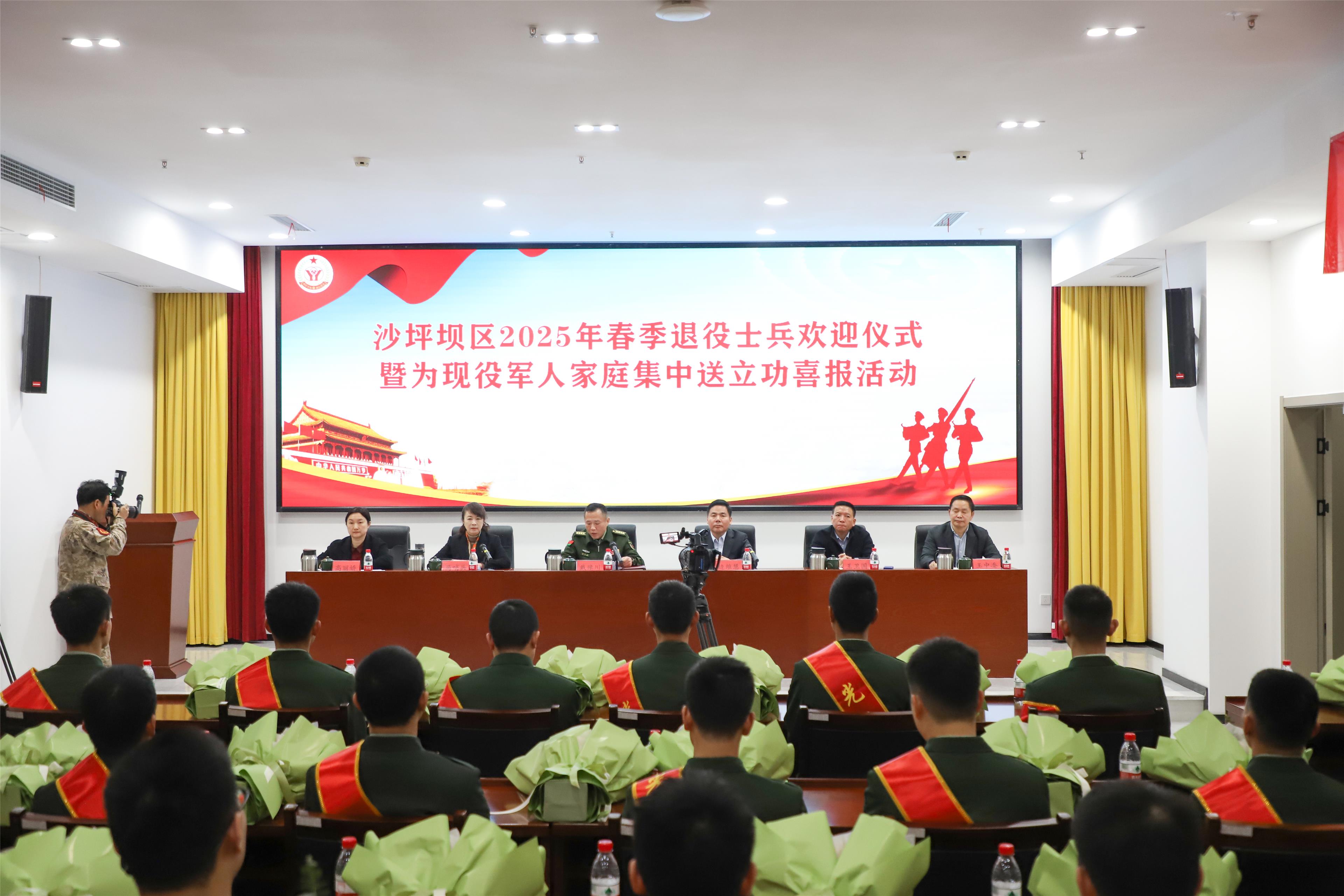 (沙磁荟-沙坪坝融媒 记者 杨飞 赵茜 通讯员 刘彦杉 文/图)3月31日,沙坪坝区举行2025年春季退役士兵欢迎仪式暨为现役军人家庭集中送立功喜报活动。区委常委、区人武部大校部长戴豫川,区政府副区长边维慧出席。