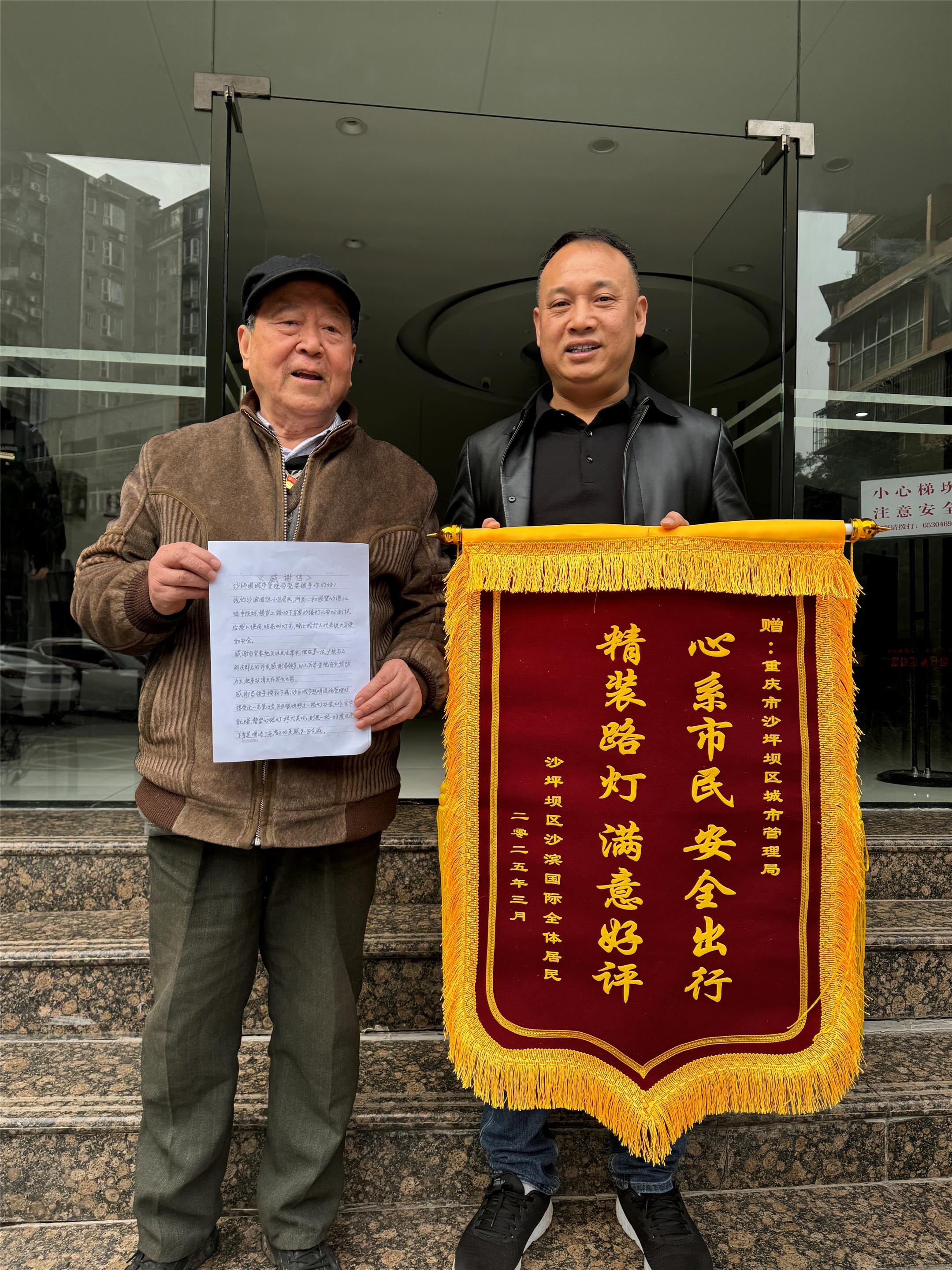 (沙磁荟-沙坪坝融媒 记者 张浩)近日,沙滨国际小区居民代表将一面写有“心系市民、安全出行,精装路灯、满意好评 ”的锦旗和两封手写感谢信送到区城市管理局,感谢他们安装路灯,解决居民夜晚出行不便的问题。