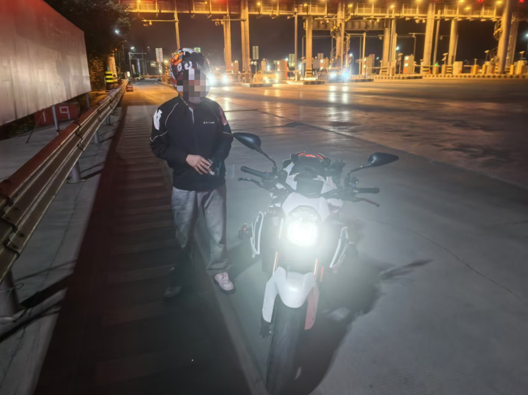 经检查证件、询问得知,驾驶员李某在四川务工,准备从四川回重庆铜梁家里。李某明知重庆境内摩托车不能上高速,但是想着天黑,又已经到重庆境内,离铜梁很近了,心怀侥幸想走高速公路回家,结果被民警抓个正着。
