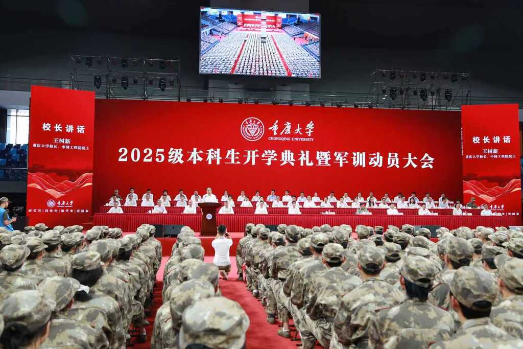 (沙磁荟-沙坪坝融媒 记者 赵杰昌)9月14日上午,重庆大学2025级本科新生开学典礼暨军训动员大会举行。重庆大学校长王树新以《志传薪火、圆梦重大》为题,为同学们上“开学第一课”。