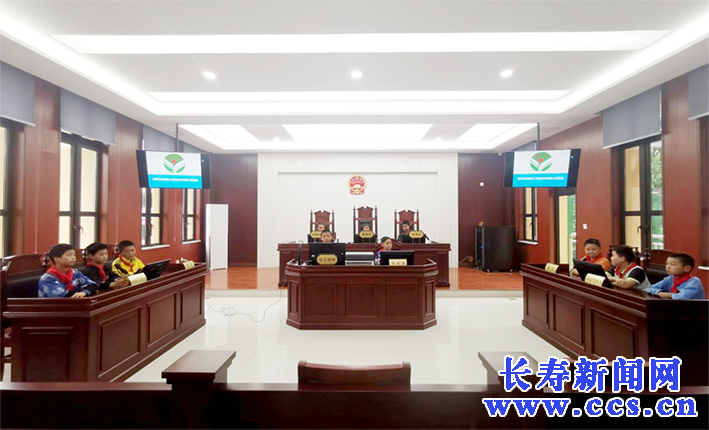 原来,这是由长寿湖人民法庭组织的“模拟法庭”入校园活动,11名小学生代表在法庭干警的指导下,穿上法袍、坐上审判台,分别扮演审判长、审判员、法官助理、书记员、原告、被告等角色,“沉浸式”体验法庭庭审全过程。