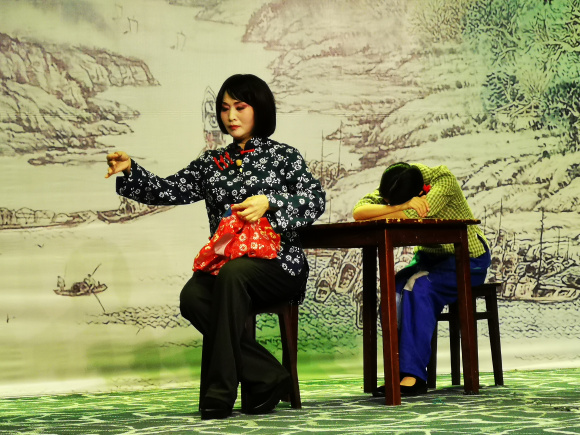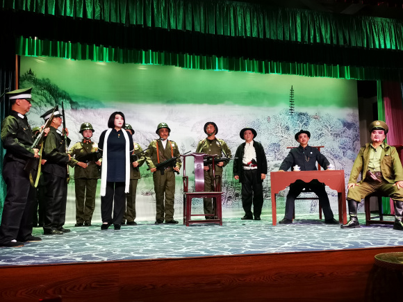 第四,这是一部“戏味”浓郁的作品。作为重庆地方主要剧种的川剧,是很讲“戏味”的。戏中的高腔曲折婉转,节奏缓慢,字正腔圆,回落于背景中的三江。其行当和服饰以及妆容全具有民国时期的合川风格,且符合每个人的身份特点。乐器使用得当,数种并用。川剧锣鼓,韵味无穷,唱词精准,时不时崩出一句巴蜀方言俚语,令人玩味。时不时又闪出两三个合川地名,引发观众乡愁。挥拳舞枪,打斗见真功。时有幽默滑稽场景,令人捧腹。总之,这是一部既有川剧“戏味”,又与时政教育相结合的好戏。当然该剧也有不足之处。笔者认为戏长,戏情发展缓慢,可作适当删减打磨。另有服饰小穿帮。但瑕不掩瑜,仍不失为一部优秀剧目。