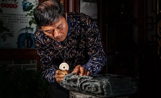 一方峡砚的制作,需要经过选材、制图、造型、细磨、上色、抛光、评选、包装等十几道工序,再由雕刻艺人们使用刻刀、钻子、磨具等工具手工打磨而成。