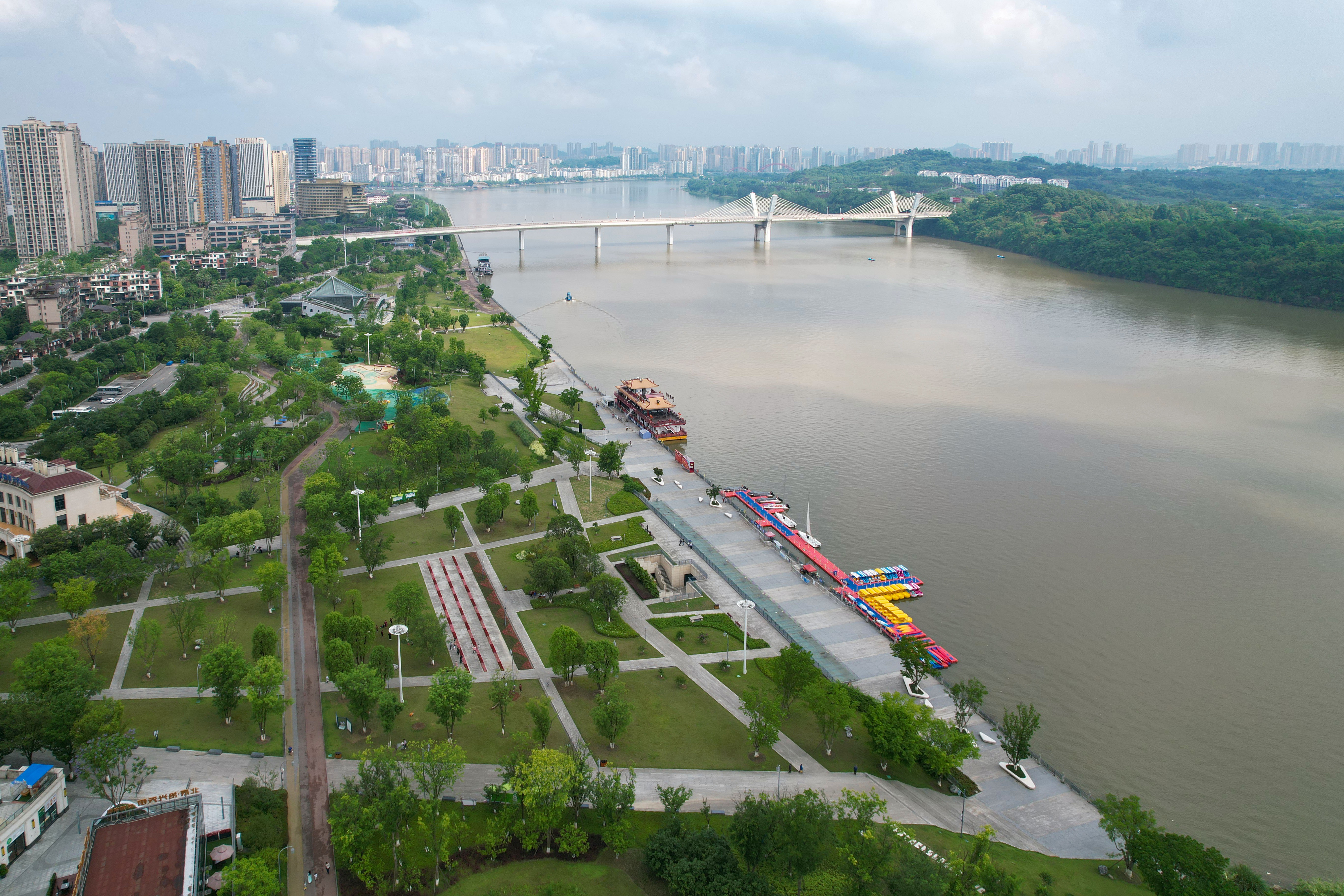 滨水岸线是稀缺的自然资源,合川区临水而建、因水而兴,嘉陵江、涪江、渠江三江汇流,三江六岸岸线总长为454.34km。近年来,合川将岸线清理整治与生态保护相结合,还江于民、还岸于民、还景于民,让三江岸线既成为防汛抗洪的重要防线,又承载生活、生态、景观功能,一幅山水相接、岸绿景美的滨江廊道画卷正徐徐展开。