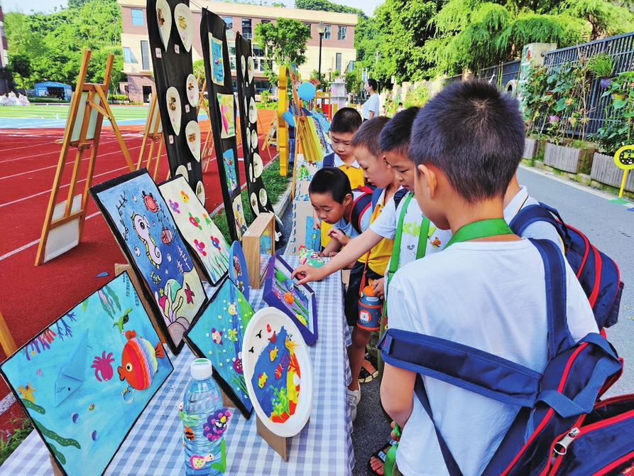 今年儿童节、端午节相隔不远,南津街小学双节同庆,5月30日,学校举办了“参天大树引成长粽情重艺过端午”主题教育活动。在老师和家长的指导下,同学们细心地折粽叶、装米、定型、打结,认真完成每一道工序,在欢声笑语中尽情感受劳动的乐趣。5月31日,南津街小学还举办了2022年春期书画比赛,比赛项目包括硬笔书法、软笔书法、绘画。各参赛学生以笔墨言志、以丹青传情,用心记录最美的瞬间。活动现场还展出了2022年劳动周手工艺作品,吸引众多师生驻足观看。