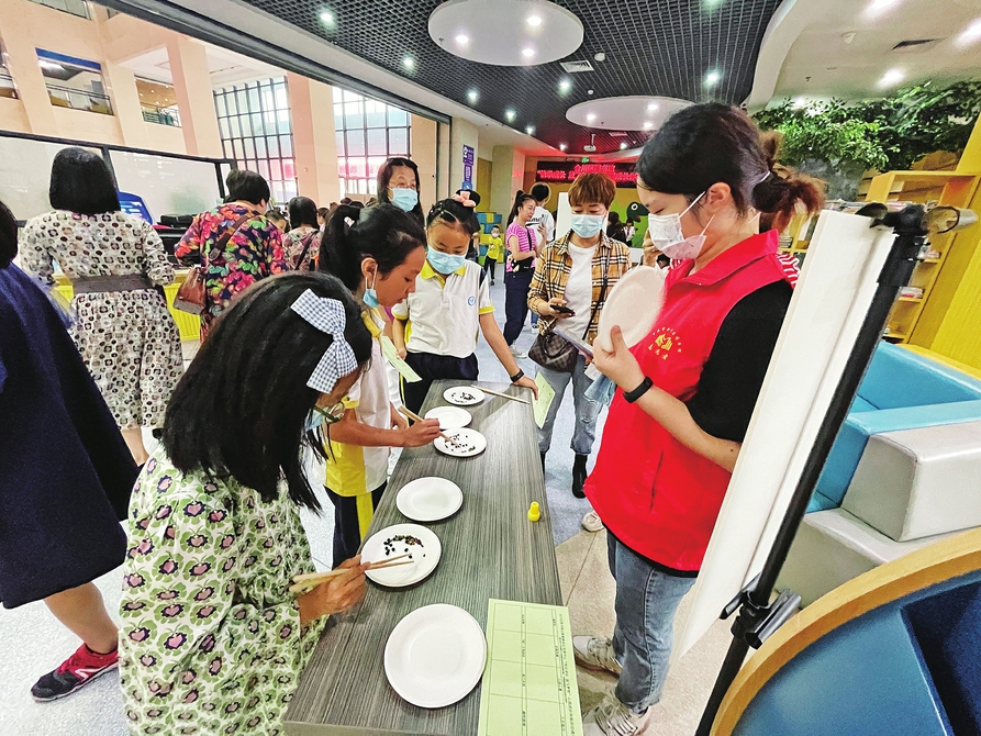 当天下午,区图书馆还组织开展了青少年心理健康知识普及活动、童梦童乐心理游园活动、“百发百粽”投壶、筷子夹物、手写心愿等互动游戏,让同学们在游戏中释放情绪,感受传统文化魅力,勇于主动挑战,促进健康快乐成长。(记者 王利 刘鑫宇 摄影报道)