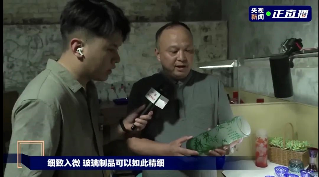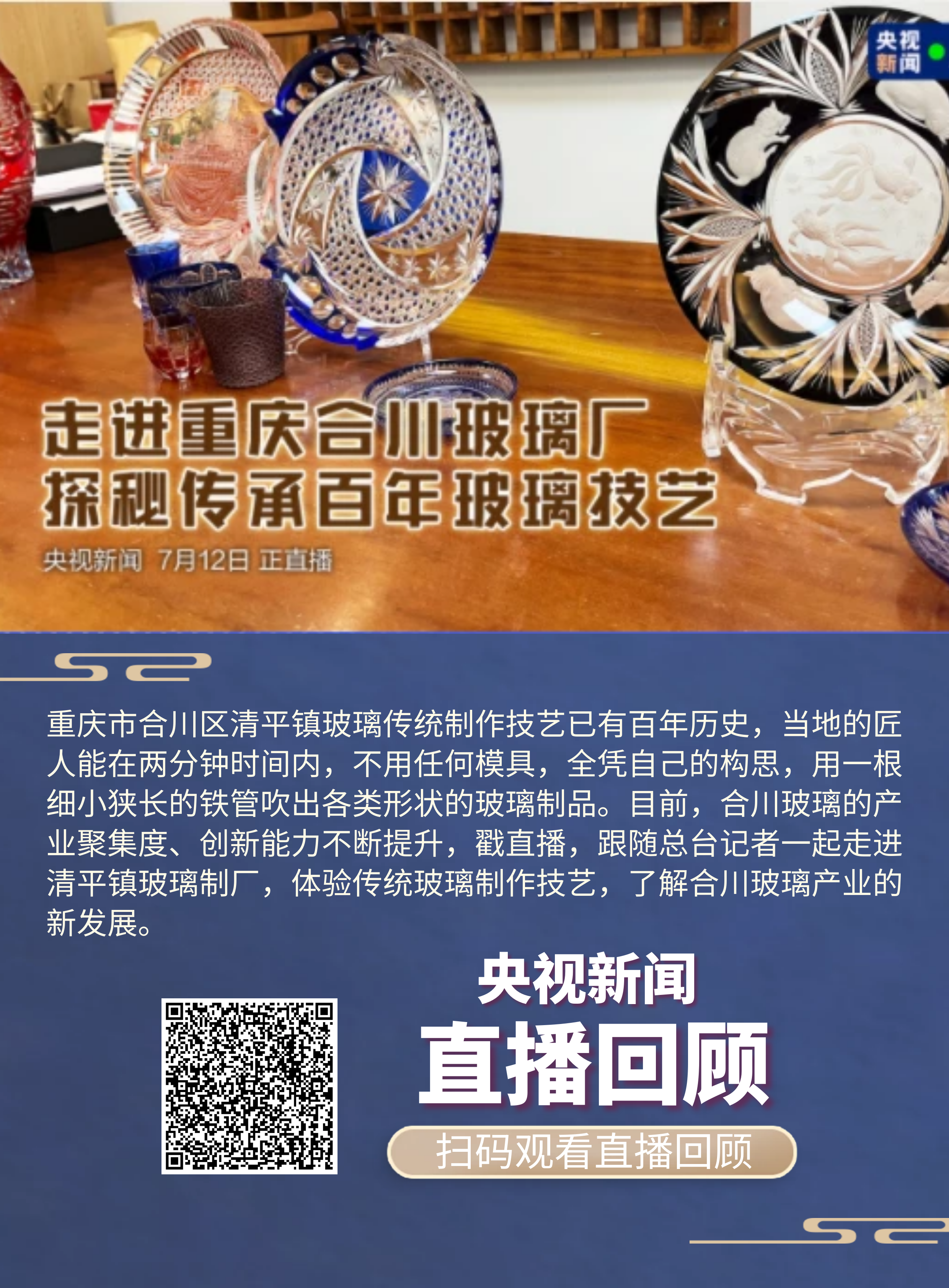 合川区融媒体中心全媒体报道(通讯员 柯蓉、吴林爱)7月12日下午,“央视新闻”记者走进我区清平镇日用玻璃品制造厂区,在清平镇党委主要负责人和企业业主、玻璃雕刻技艺传承人的引导介绍下,揭秘传承百年的合川清平玻璃制作技艺。