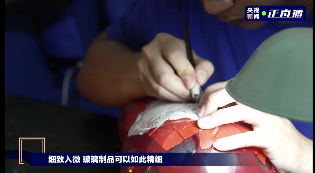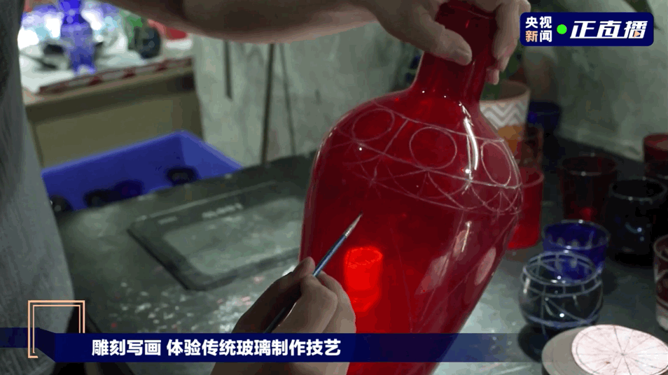 清平玻璃企业主高先生介绍说,这些工艺技术目前还无法被机械所替代,必须手工制作。“央视新闻”记者也在直播期间亲身体验了瓶身绘图工作。