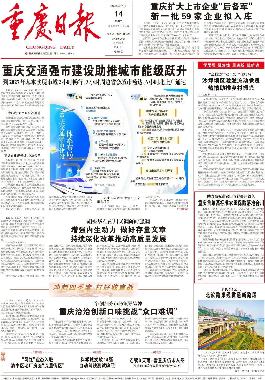 11月9日,记者从合川区农业农村委获悉,该区铜溪镇弯桥村业主李治海向人保财险重庆分公司(下称“保险公司”)支付了5万元的保费,为894亩高标准农田购买的“良田保”随之正式生效。这也是重庆首笔为高标准农田购买的保单。