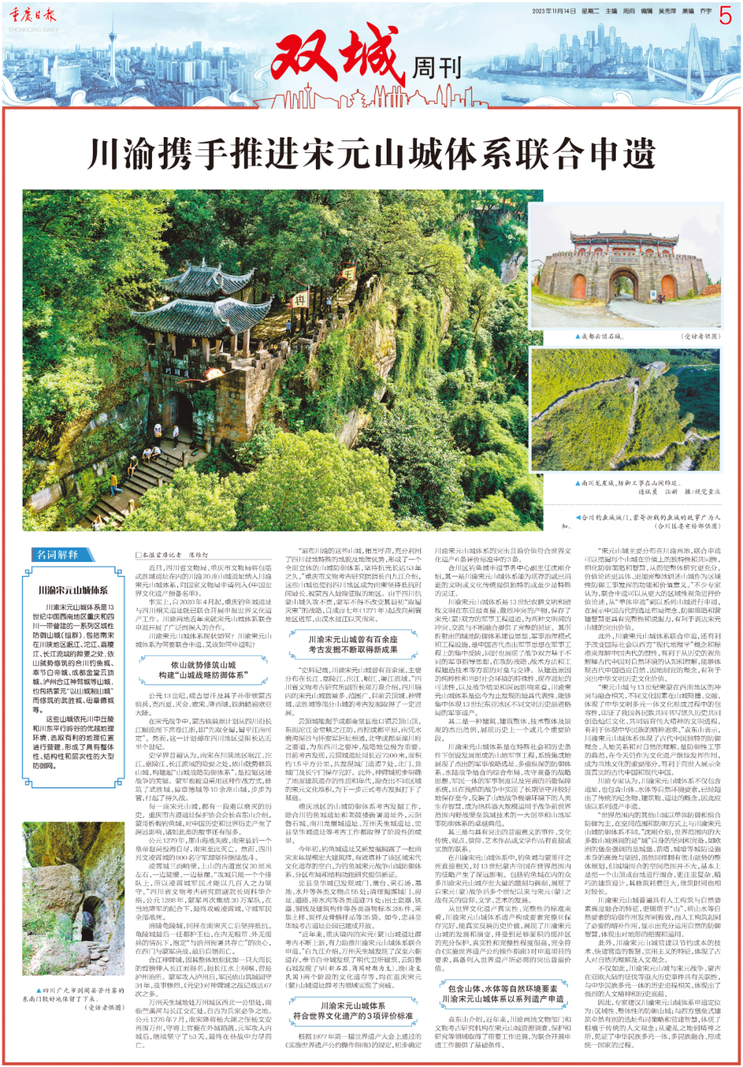 包含山体、水体等自然环境要素川渝宋元山城体系以系列遗产申遗